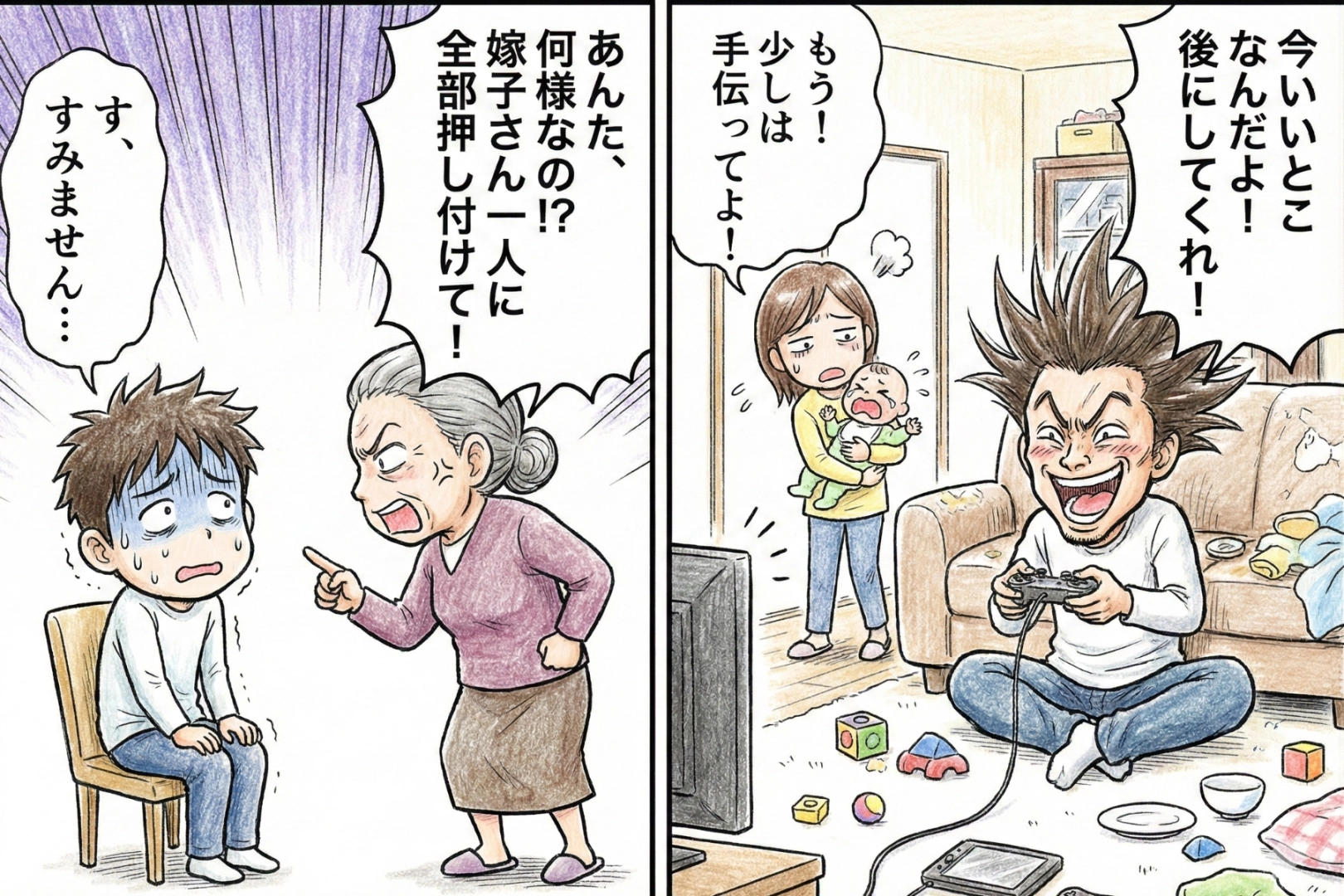 ある休日の午後、義母が予告なしにわが家を訪ねてきました。「え、いきなり」と思いつつも、ゲームをしている夫に「子どもをみてて」と言って、扉を開けます。ゲームの音が玄関まで響いている状況。義母とともにリビングに足を踏み入れたその瞬間、目に飛び込んできたのは、ソファでコントローラーを握り、ぐずる子どもを放置している状態。義母は何も言わず、しばらくその光景を見つめていたのです。夫はようやく母親の存在に気づき、慌ててゲームを止めようとしましたが、すべてはもう遅かったのかもしれません。