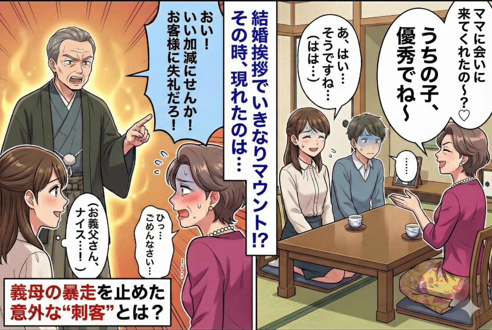 義母「ママに会いに来てくれてたの~?♡」結婚挨拶時にマウントとってきた義母→刺客の登場に義母タジタジ