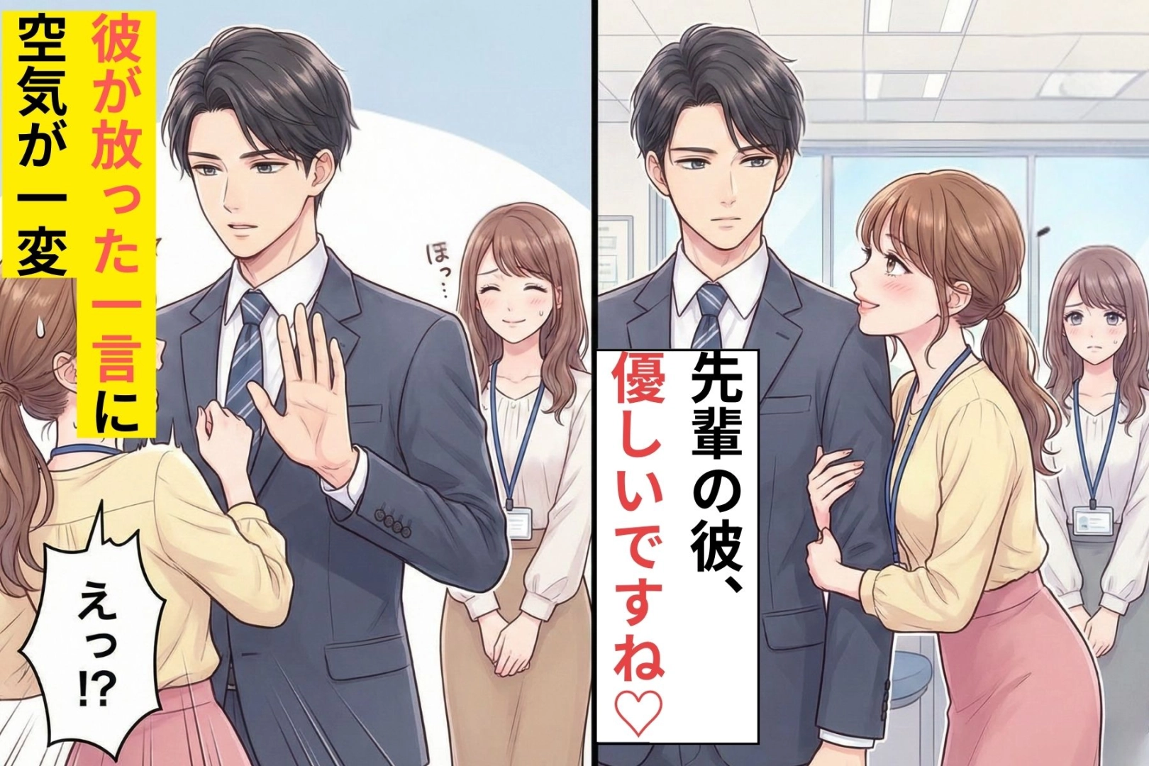 職場に彼が来た瞬間、豹変して距離を詰めてくる後輩女子。上目遣いで腕に触れ、挙げ句の果てには「個人的に相談に乗って」とあまりにも非常識。 見ているこっちがハラハラする中、その空気を見事にぶち壊してくれたのは、他でもない彼の「一言」でした。