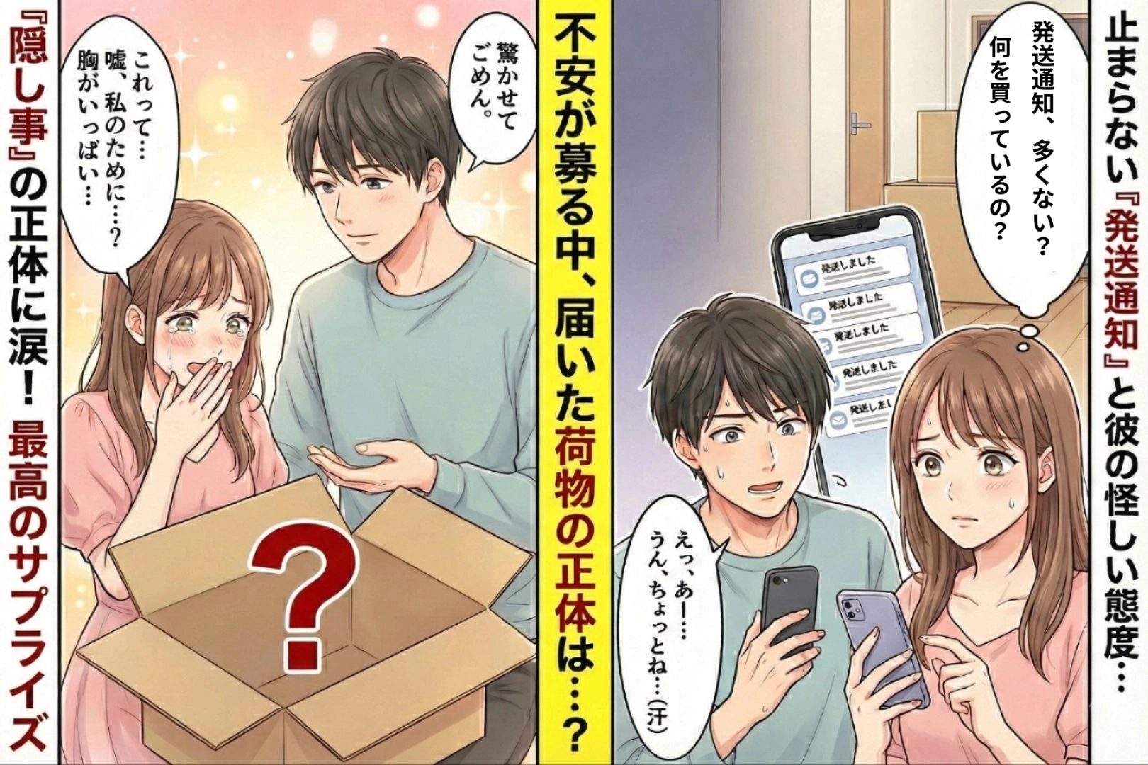 同棲を始めて半年。穏やかな日々が続くはずだったのに、最近、彼のスマホに「発送しました」の通知が何度も届くようになりました。玄関には見慣れない大きな段ボールが積まれ、何を買ったのか聞いても曖昧な返事ばかり。信じたい気持ちと、不安が少しずつせめぎ合っていきました。