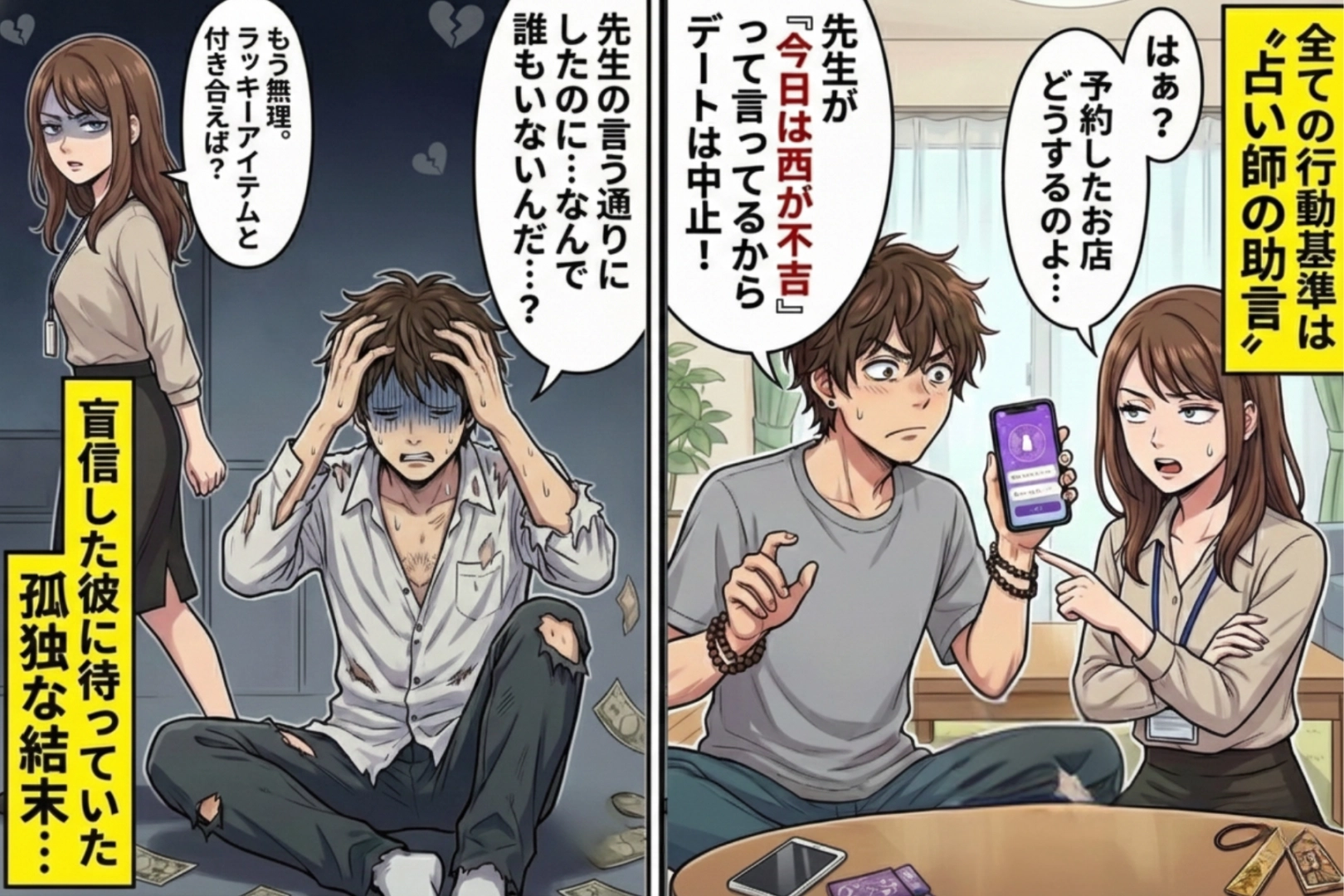 「占い師の先生がこう言ってたから」。彼の口からその言葉が出るたび、私は小さなため息をこらえていました。最初は「そういう趣味もあるのかな」と思っていたけれど、やがて彼の人生は占いなしでは動かなくなっていったのです。これは、占いに全てを委ねた彼と、そこから静かに離れた私のお話です。