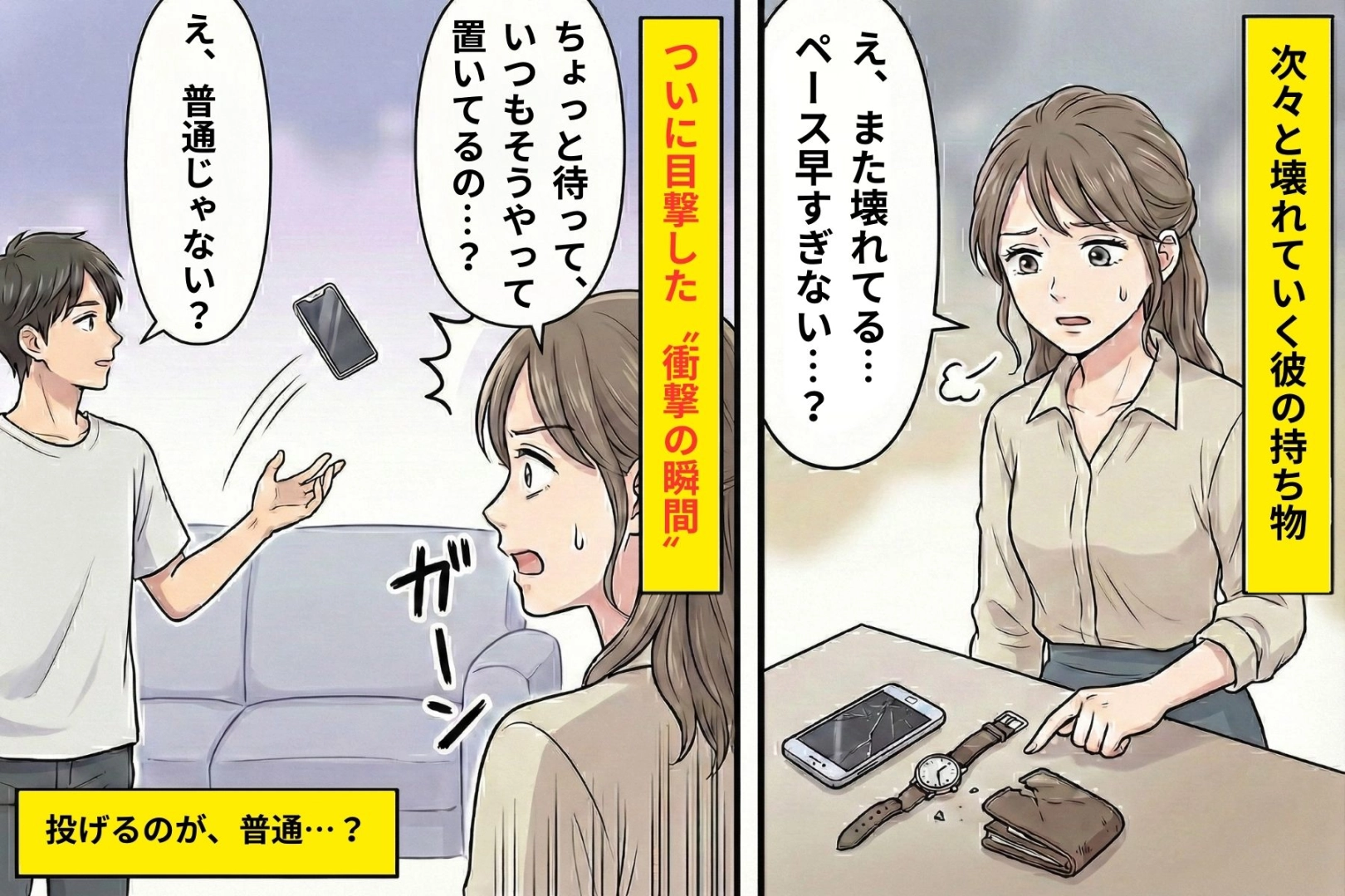 ある日、彼の部屋で過ごしていたときのこと。彼がスマートフォンを使い終わると、無造作にソファの上にポンと投げたのです。続けてリモコンも同じように放り投げ、脱いだ腕時計はテーブルに放るように置いていきます。「ちょっと待って、いつもそうやって置いてるの?」と聞くと、彼はきょとんとした顔で「え、普通じゃない?」と答えました。どうやら彼にとって、物を投げるように置くのが当たり前の習慣のようです。よく観察していると、鍵を玄関に投げ入れ、本を棚に押し込み、充電器のコードは引っ張って抜く。私は思わず「それ、全部壊れる原因だよ...」と呟いてしまいました。