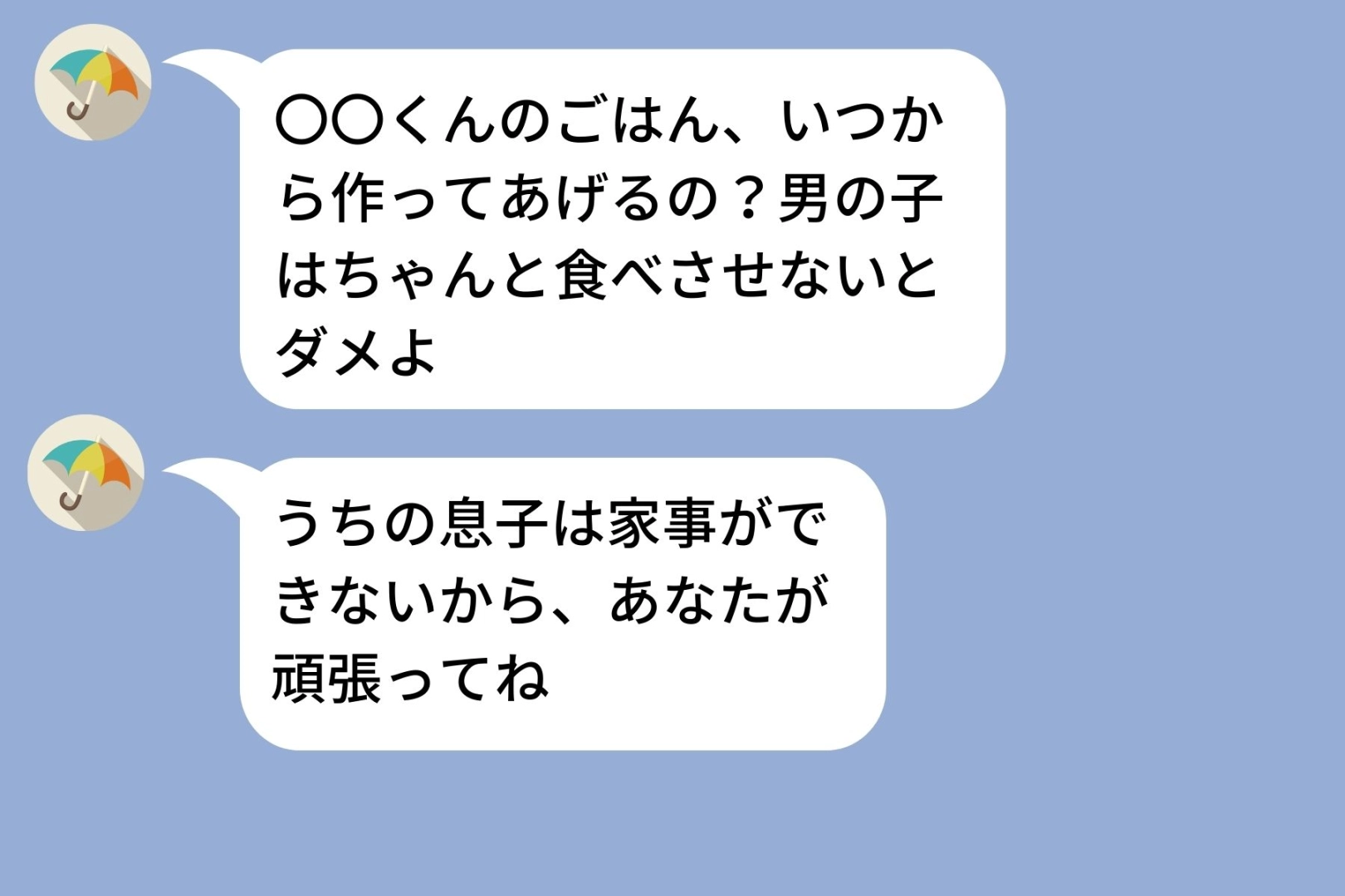 「息子のごはん、いつから作ってあげるの?男の子はちゃんと食べさせないとダメよ」。まだ結婚もしていない、同棲すらしていない段階でのこのメッセージに、私は言葉を失いました。