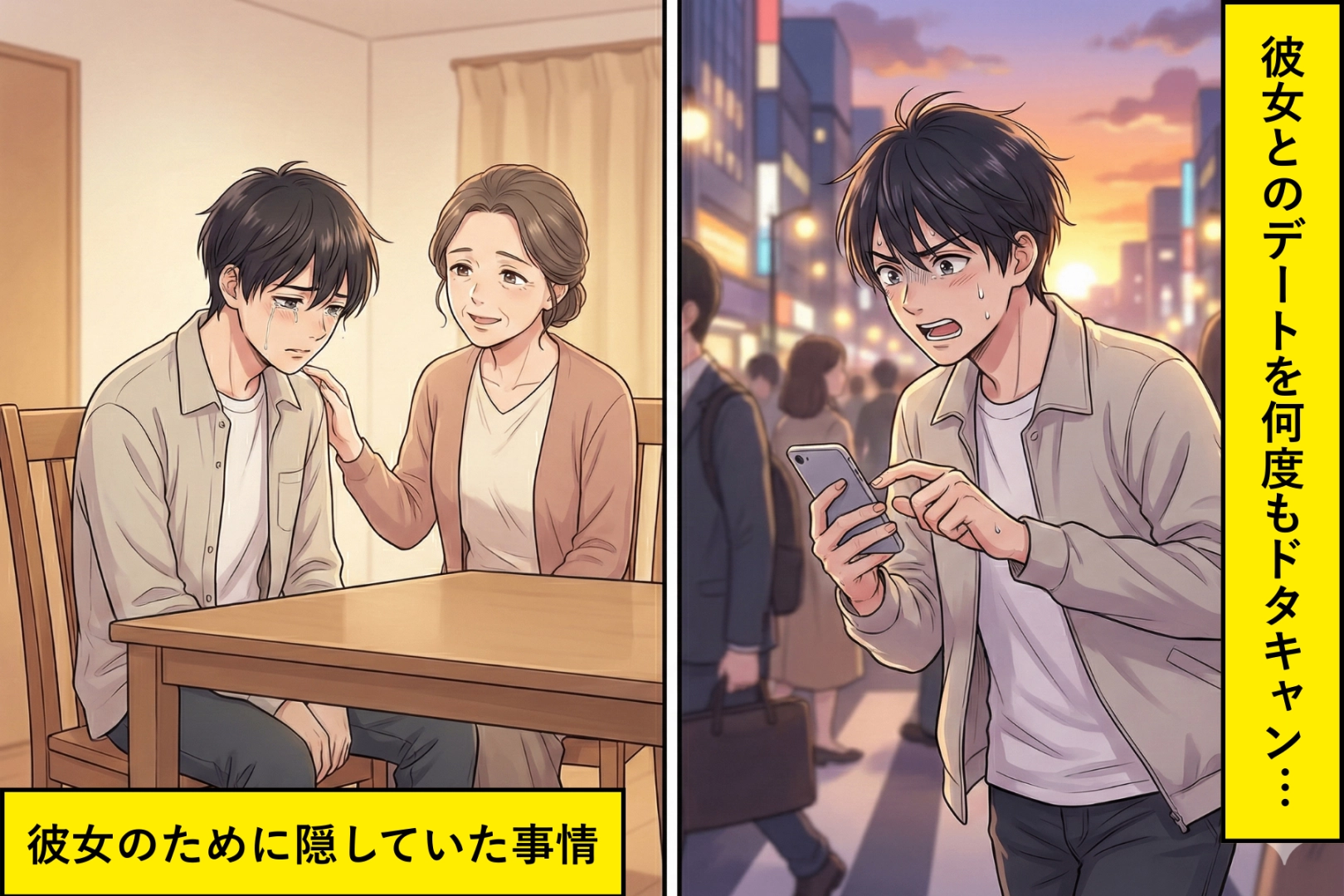 母は数年前から難病を抱えていました。普段は落ち着いていても、突然発作が起きることがあるのです。父は僕が高校生の頃に他界し、兄弟もいません。発作が起きれば、駆けつけられるのは僕だけでした。彼女には何度も「急用」とだけ伝えてドタキャンを繰り返しました。本当のことを言えなかったのは、彼女に重荷を背負わせたくなかったから。「介護をしている彼氏」なんて、きっと迷惑だと思っていたのです。