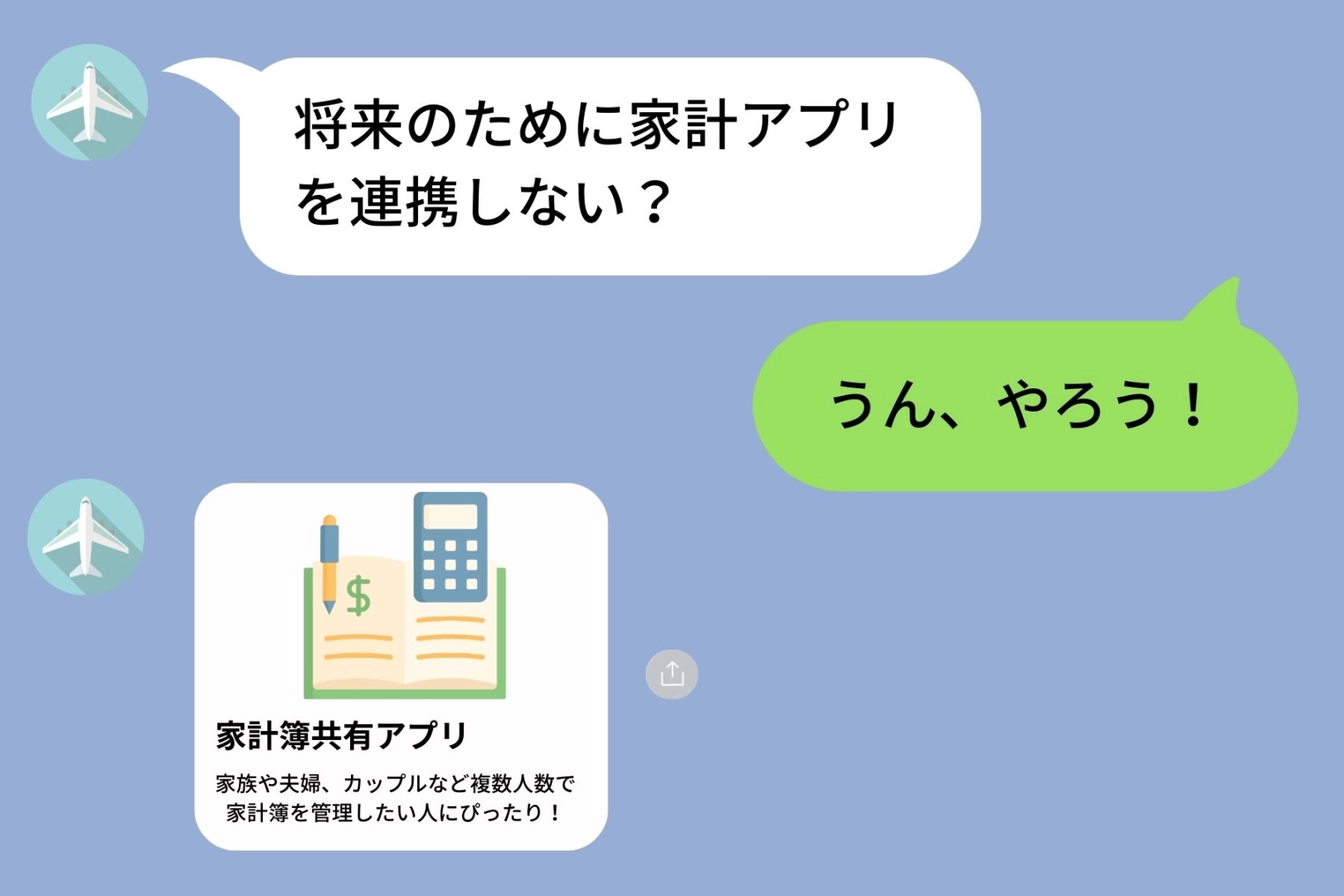 仕事終わりにスマホを見ると、彼からのLINEが届いていました。「将来のために家計アプリを連携しない?」という内容に、思わず頬が緩んだのを覚えています。私たちは来年あたり同棲を考えていて、お金の話もそろそろ必要だと感じていた頃。彼から先に提案してくれたことが嬉しくて、「うん、やろう!」とすぐに返信しました。
