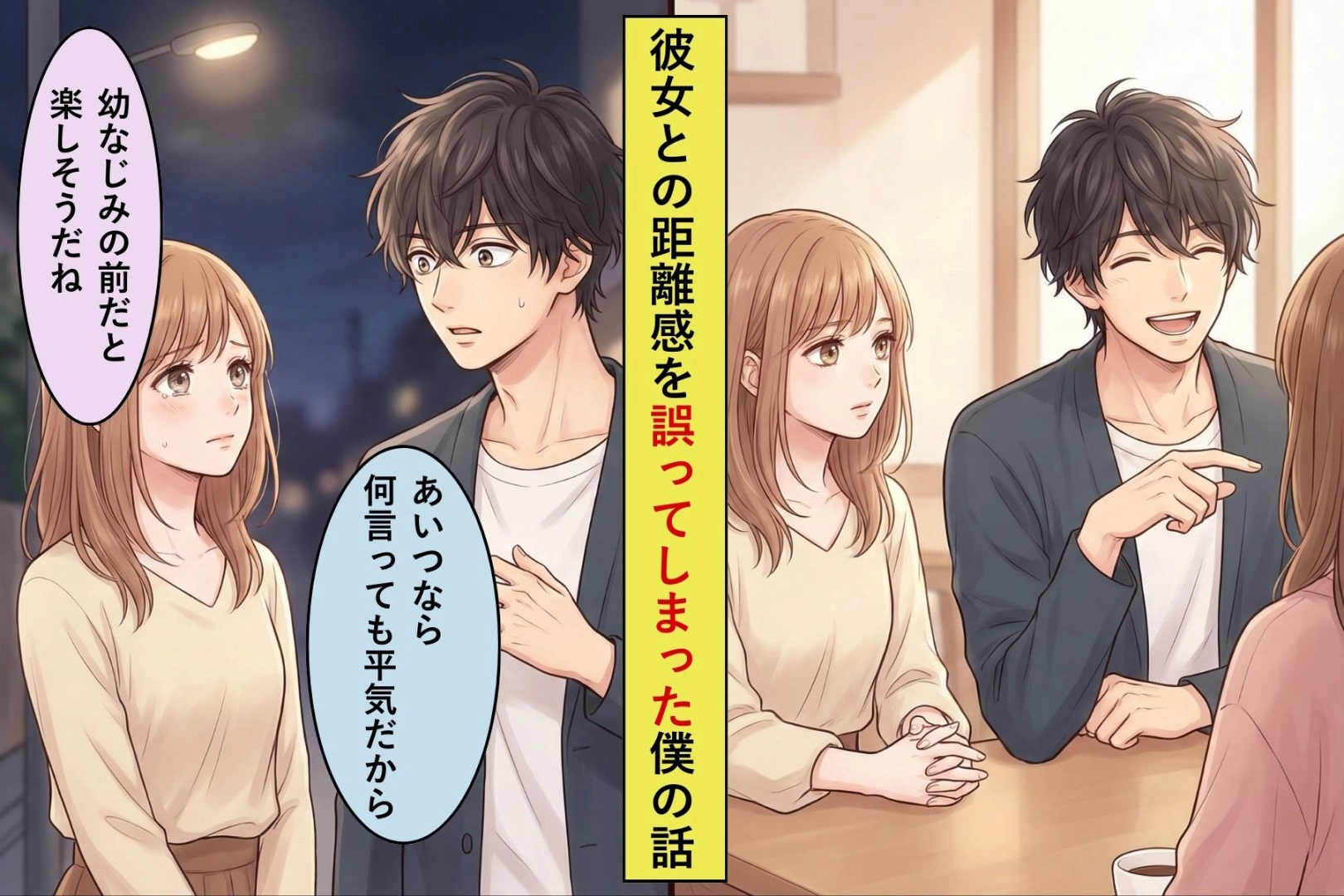 彼女を交えて食事をしたとき、僕はいつも通りその幼なじみと軽口を叩き合っていました。そのときは気づかなかったのですが、隣で彼女が僕たちを見ていたこと。あとになって、その視線の意味を知ることになります。