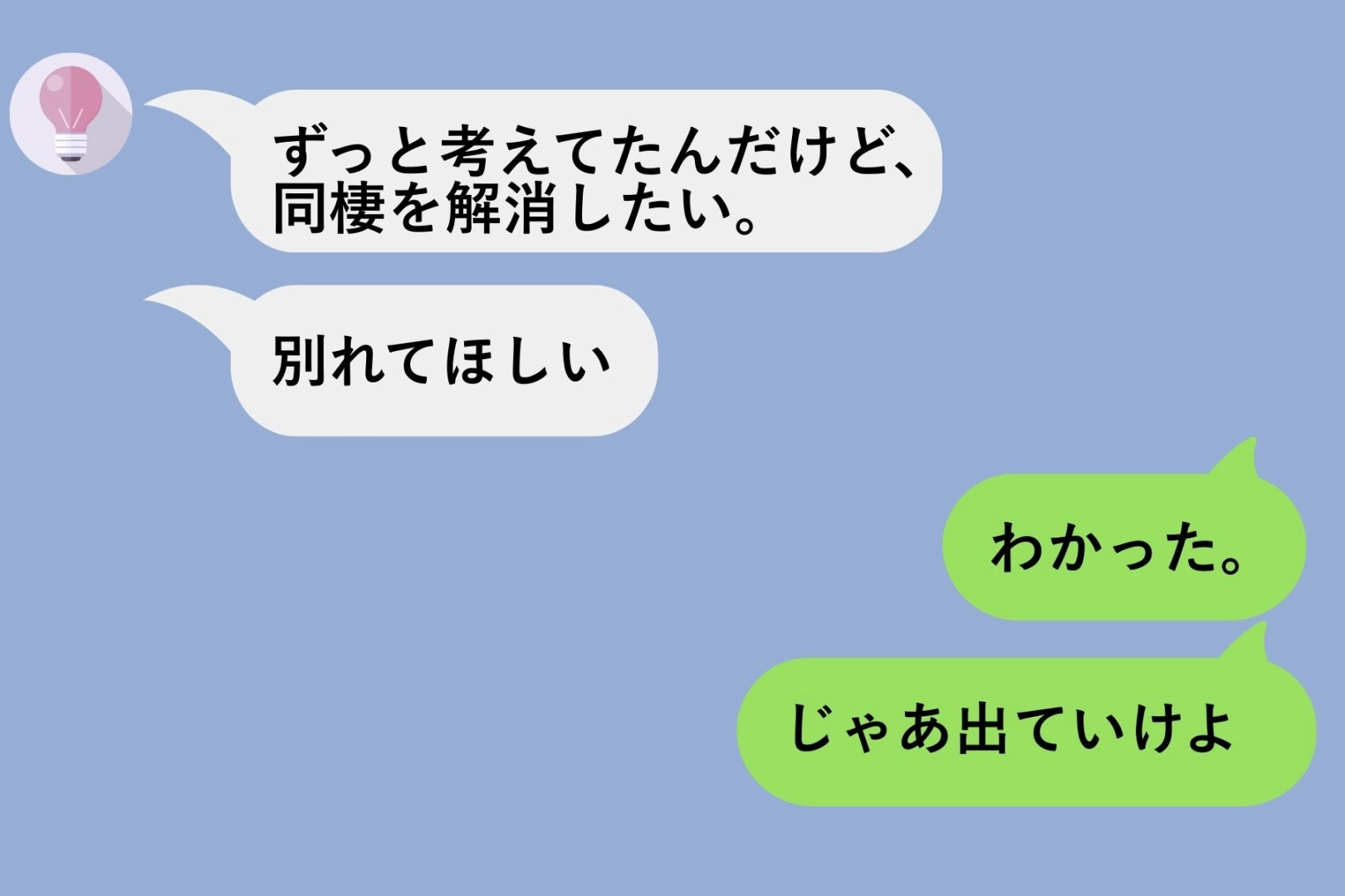 頭では理解できたものの悔しくて、「同棲解消したら女性が出ていくものだ」とLINEで返してしまいました。けれど、それ以上の反論はすることはできません。