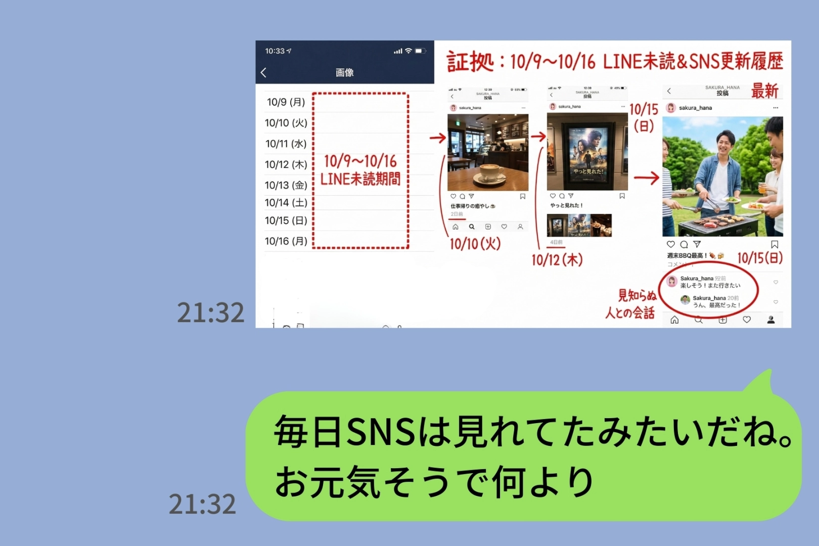 チャットは既読つかないのに、SNSは更新している彼→彼のオンライン情報を送り付けた結果