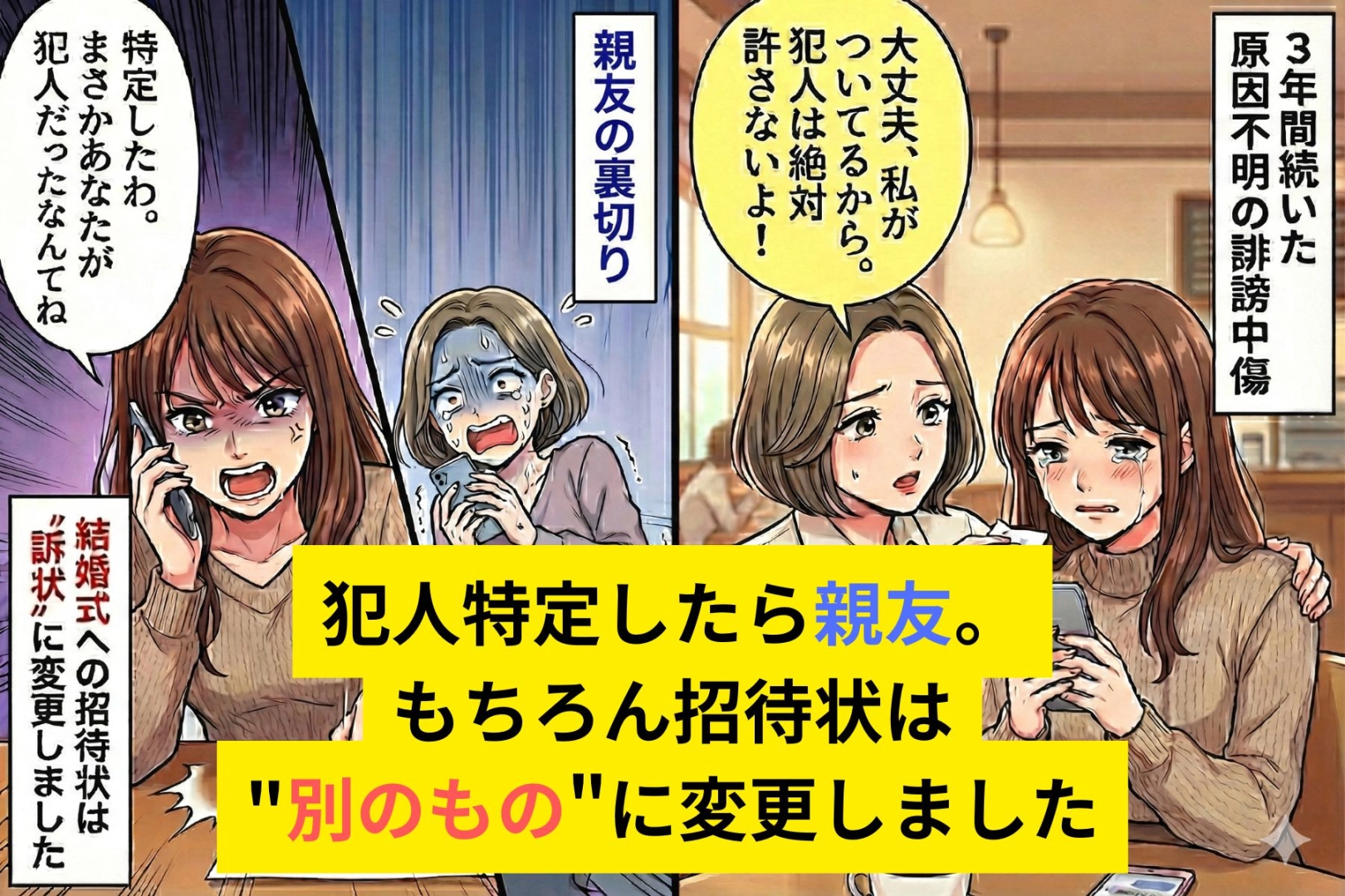 【実話】3年間続いた誹謗中傷。開示で判明した相手は、結婚式で受付を任せるはずの親友だった