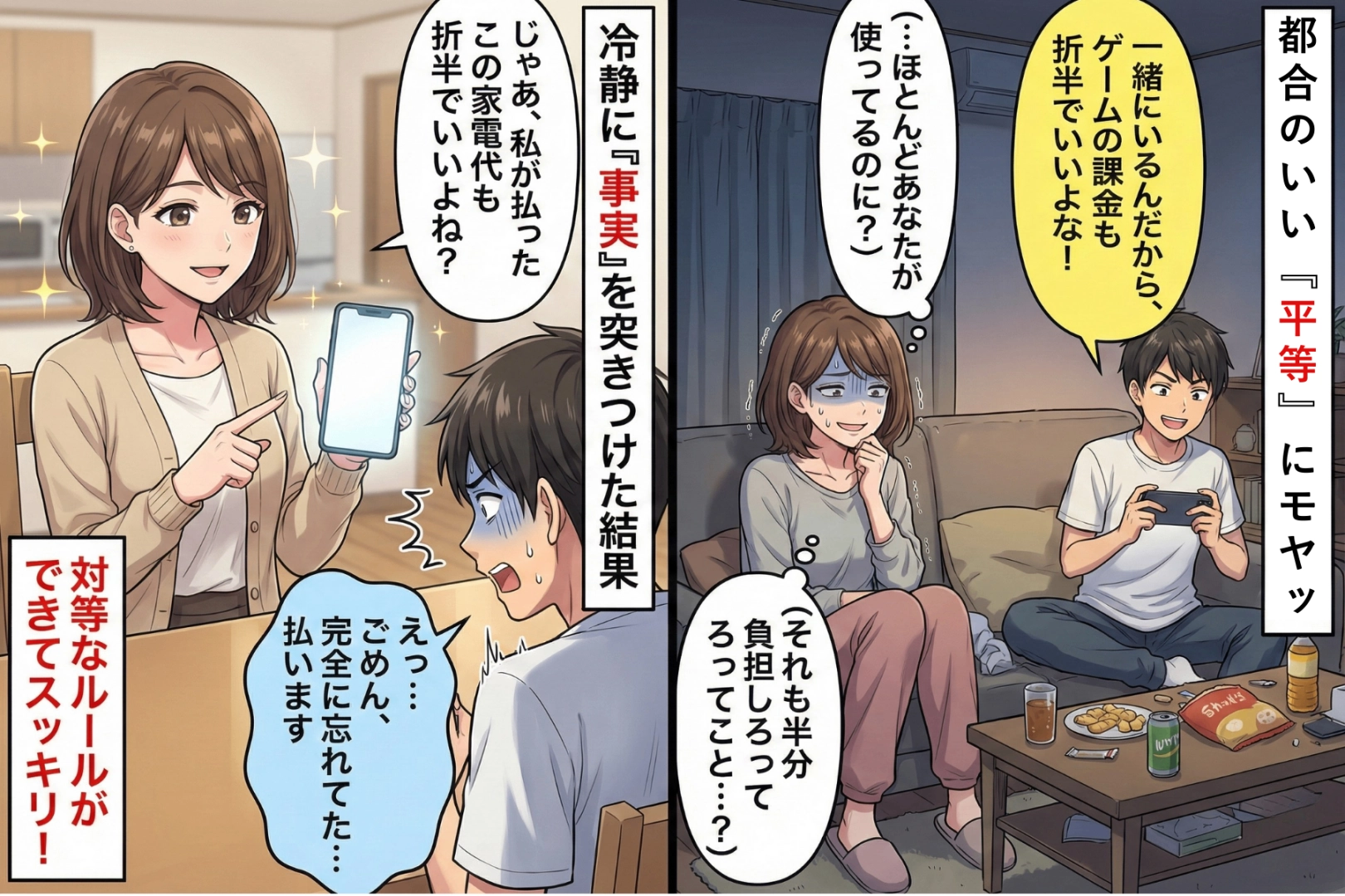 彼の「ゲームの課金代も折半ね」にモヤッ...。家電は全部私持ちだったので請求した結果
