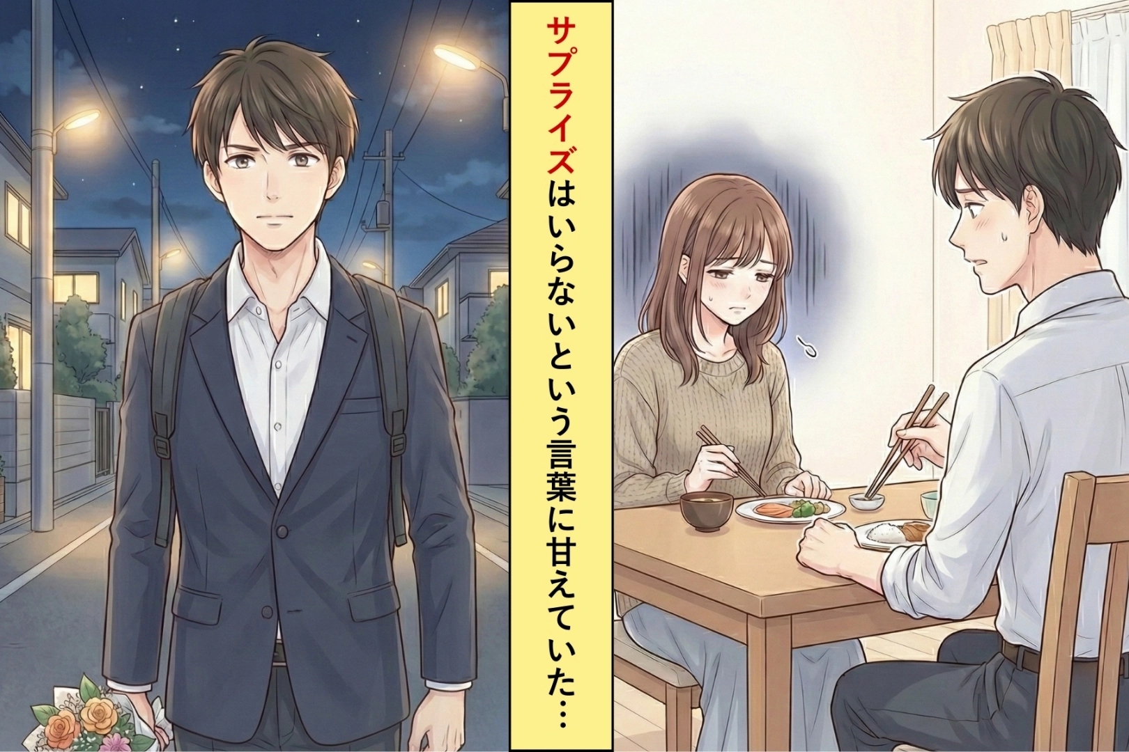 「サプライズは不要」という妻の言葉を真に受けて、記念日に何もしなかった私。しかし、妻の涙を目の当たりにして初めて、その言葉の裏にあった本当の気持ちに気づかされることになりました。