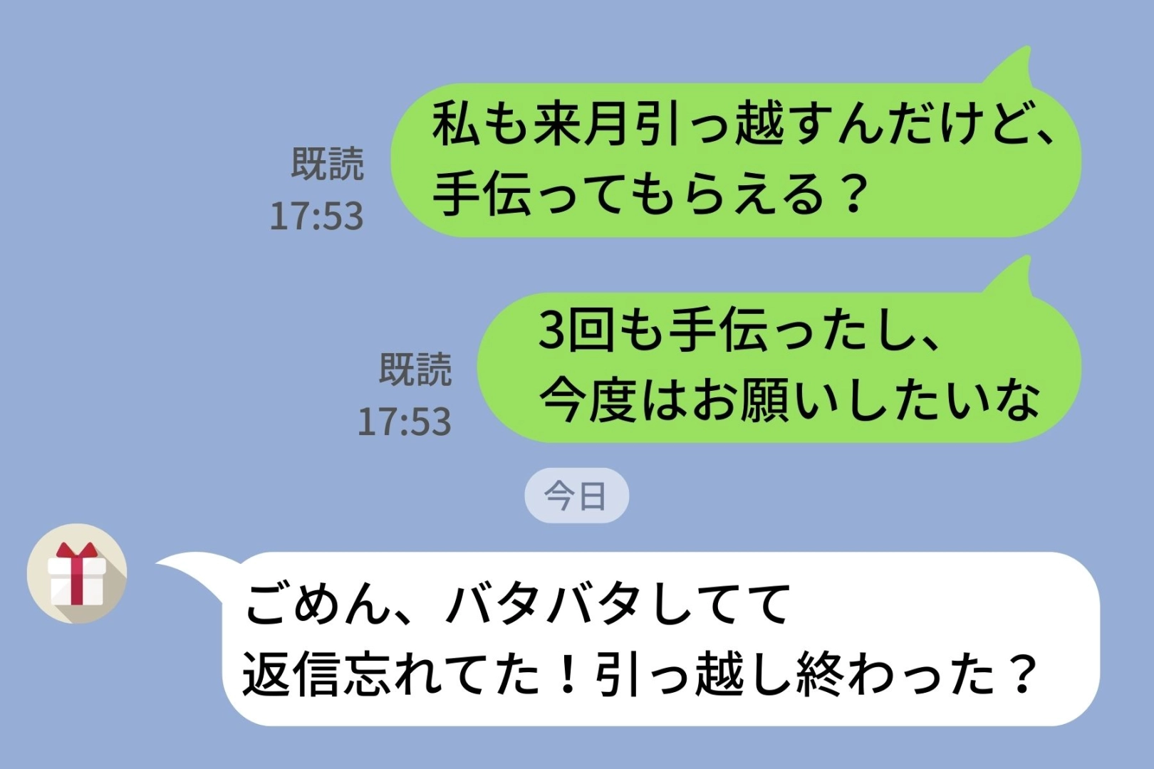 引っ越しのたびに「手伝って」とLINEしてくる友人。私の引っ越しを手伝ってもらおうと連絡したら...