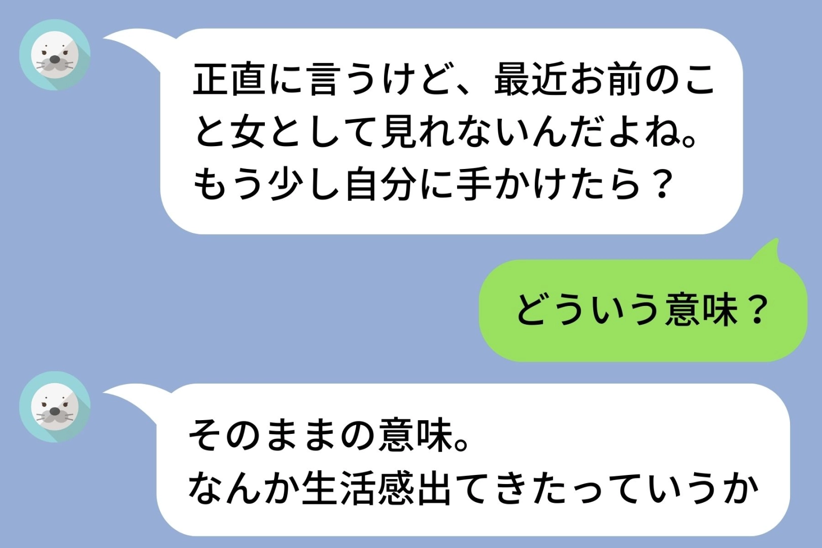 確かに最近は仕事に追われて、髪も伸ばしっぱなし、スキンケアも適当になっていたかもしれません。でも3年間一緒にいた相手から、こんな言葉をLINEで投げつけられるとは思っていませんでした。「どういう意味?」と返すと、「そのままの意味。なんか生活感出てきたっていうか」と追い打ちをかけてきました。スマホを伏せて天井を見つめたまま、その夜は一睡もできませんでした。