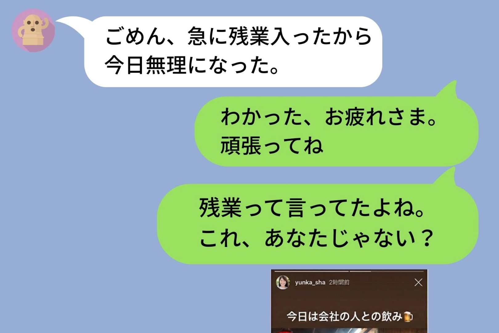 「今日は残業」と言ったはずの彼氏が友達のストーリーに映り込んでいた
