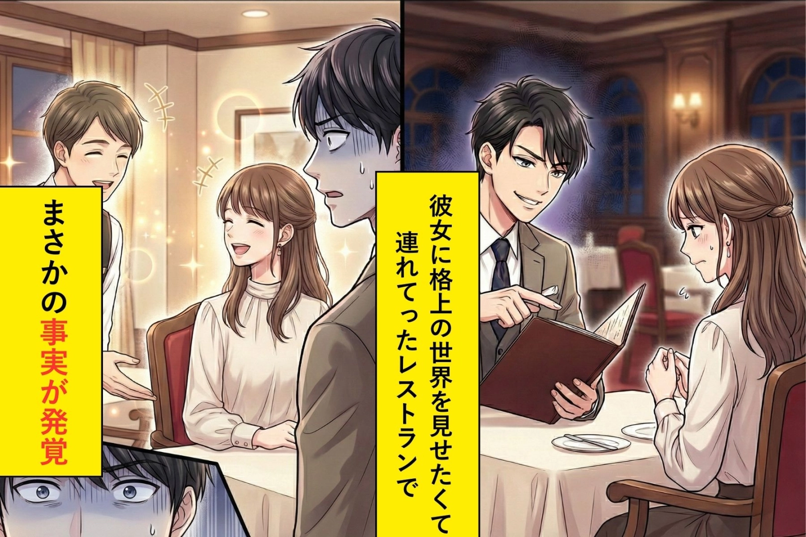 彼女にいいところを見せたい。格上の世界を見せてやりたい。そんな思いで予約した高級レストラン。けれど扉を開けた先で待っていたのは、自分の浅はかさを突きつけられる現実でした。