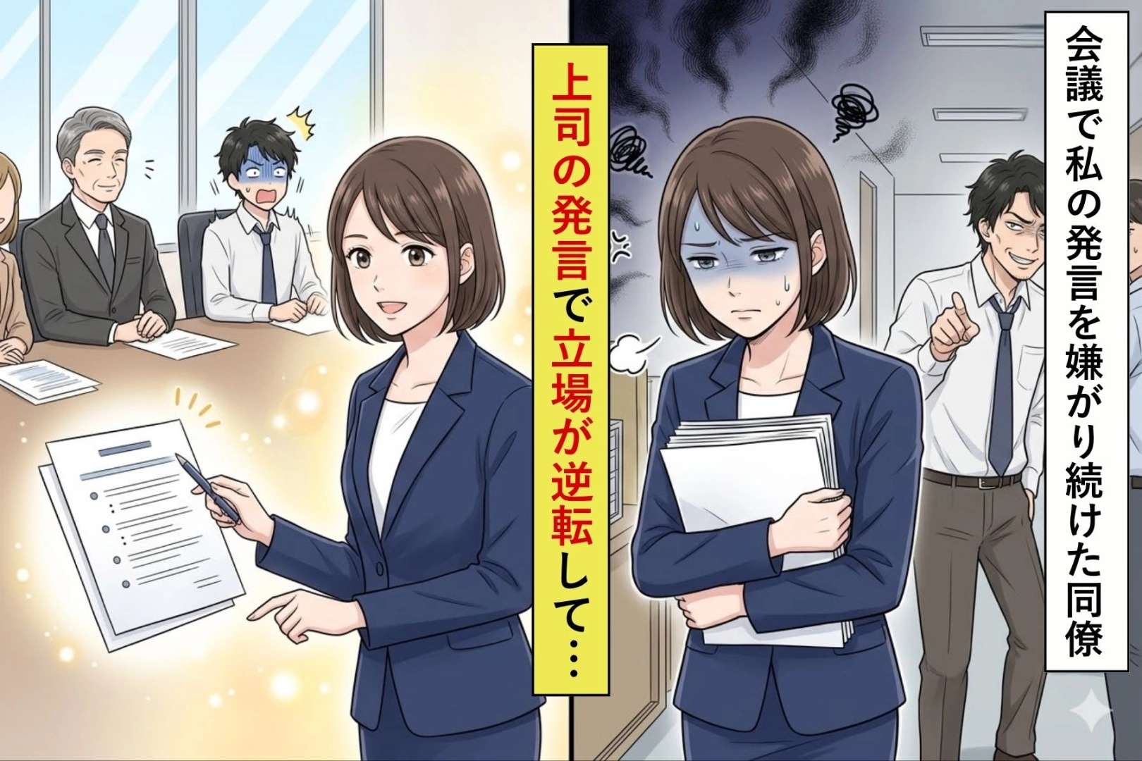 会議で私の発言を嫌がり続けた同僚→上司の発言で立場が逆転して...