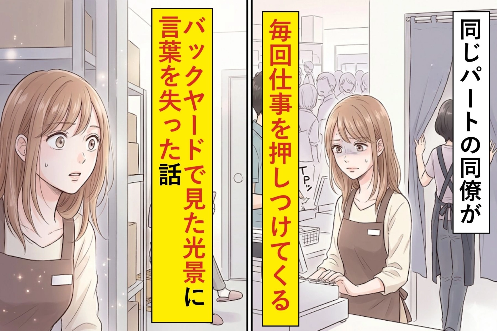 一緒のシフトに入るたびに、気づけば自分だけが動かされていました。おかしいとわかっていても何も言えなかった私が、ある日バックヤードで見た光景に、思わず立ち尽くしました。