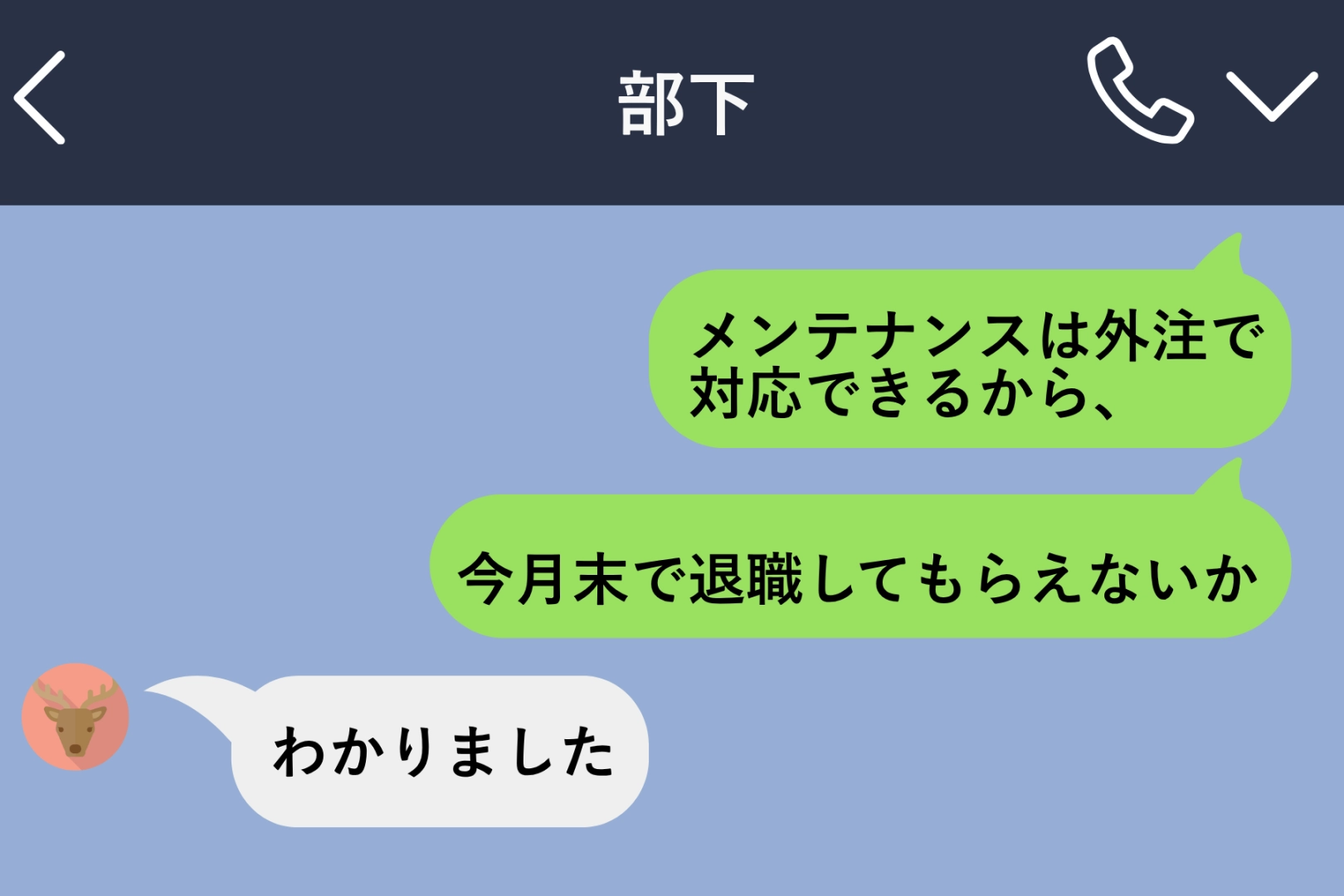 「メンテナンスは外注で対応できるから、今月末で退職してもらえないか」