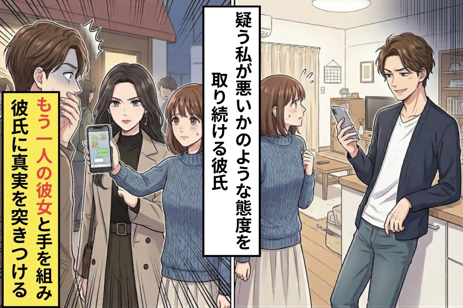 彼氏がスマホを隠すようになった。急に残業が増えた。休日の予定を曖昧にする。どう見ても怪しい。でも彼氏に聞いても「被害妄想じゃない?」「信じられないの?」と逆ギレされるだけでした。「浮気してるでしょ」と言うと、彼氏は笑って言いました。「証拠あるの?ないなら言いがかりだよね。疑うなら別れればいいじゃん」と。