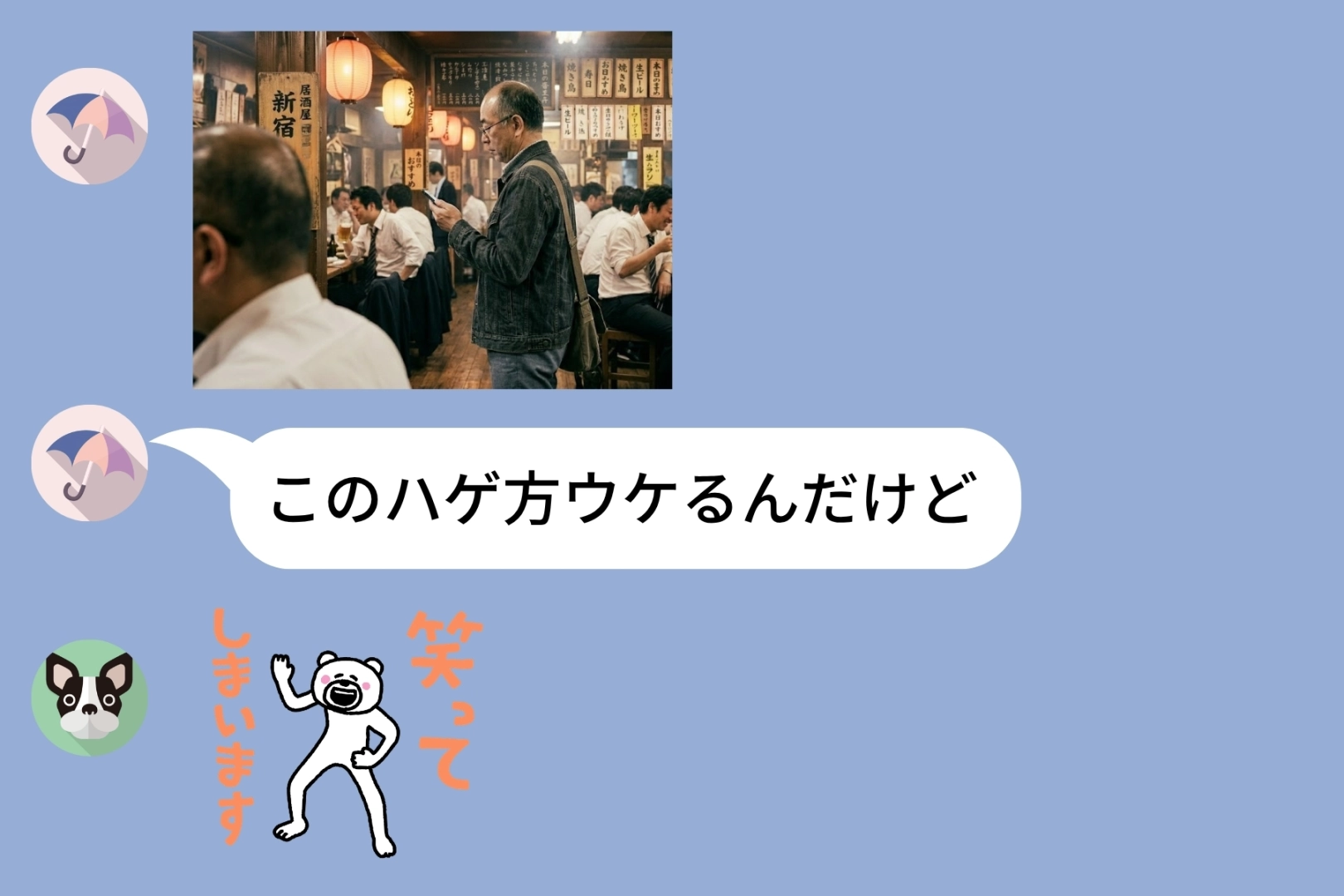 きっかけは、部署の飲み会のあとでした。同僚がグループチャットに男性社員の写真を投稿したのです。本人に気づかれないよう横から撮ったらしいその写真に、「このハゲ方ウケるんだけど」というコメントがついていました。スタンプや笑いの返信がすぐに並びました。
