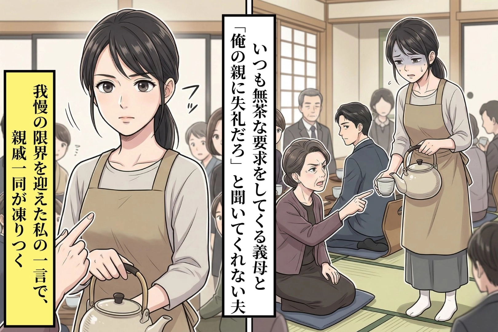 義実家からの要求は、全て私に回ってきました。断ろうとすると夫は「俺の親に失礼だろ」と言う。私の味方はしてくれない。積もり積もった不満が爆発したのは、義実家での法事の日でした。