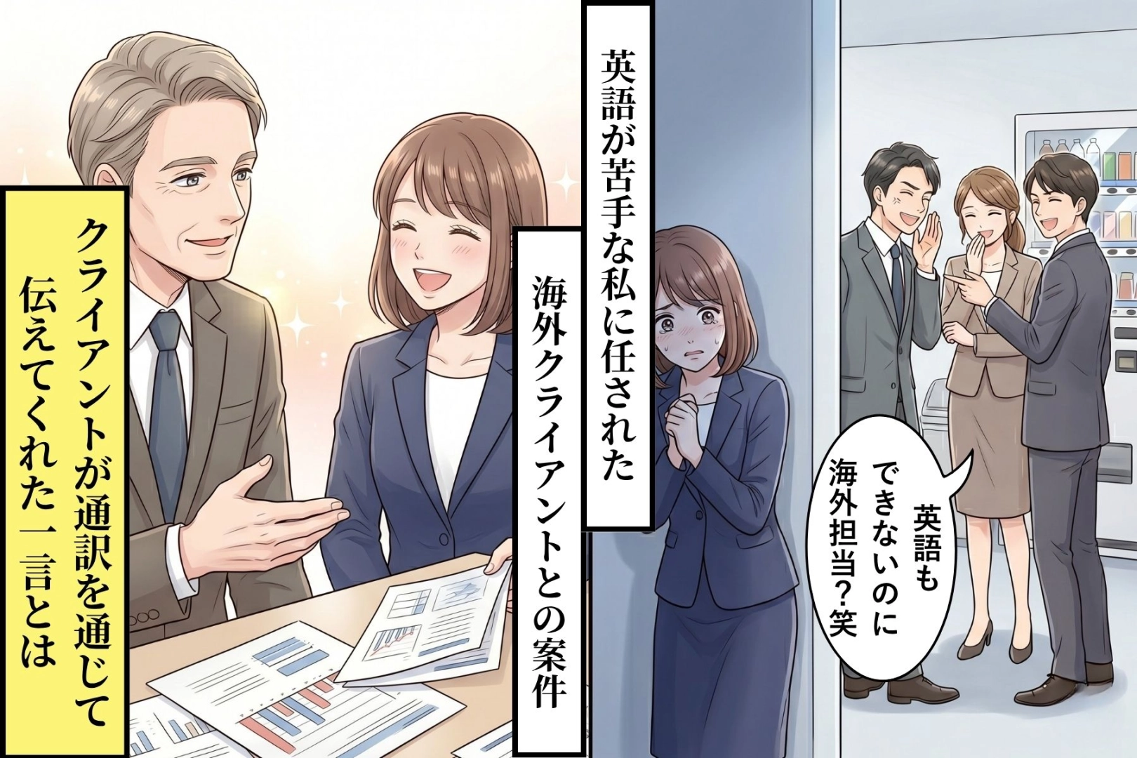 英語が苦手な私に、突然任された海外クライアントとの案件。不安を抱える私の耳に届いた同僚の言葉は、想像以上に胸に刺さるものでした。