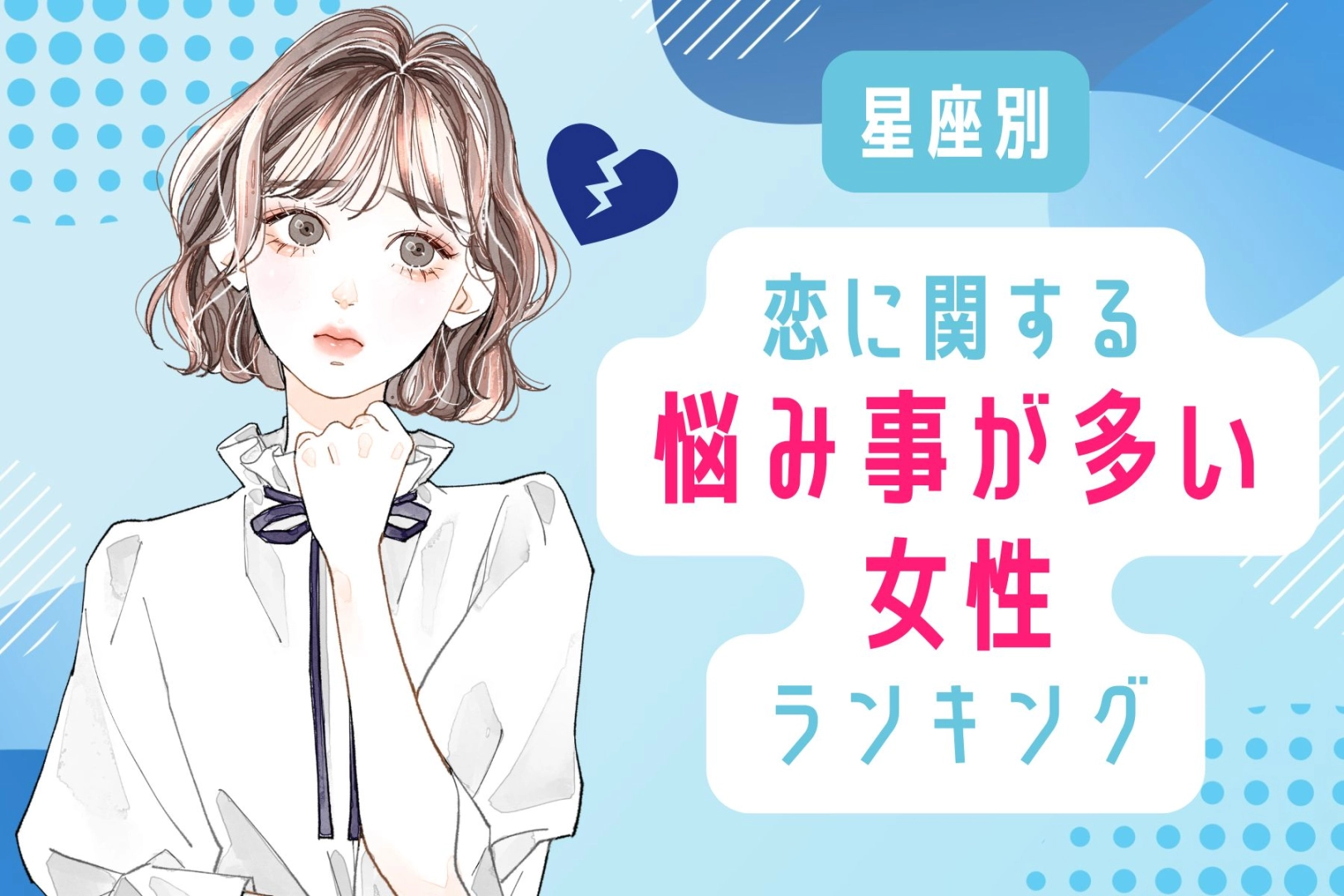 【星座別】「めちゃくちゃ悩む...」恋に関する悩み事が多い女性ランキング<第4位~第6位>