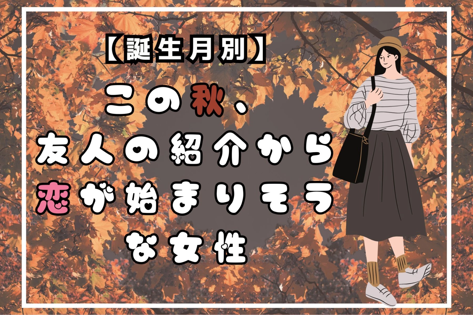 秋の訪れとともに、恋のチャンスも訪れるかもしれません。特に友人の紹介がきっかけとなる出会いに注目です。この記事を読めば、恋のチャンスを逃さず、素敵な出会いをつかむヒントが見つかるかもしれません。