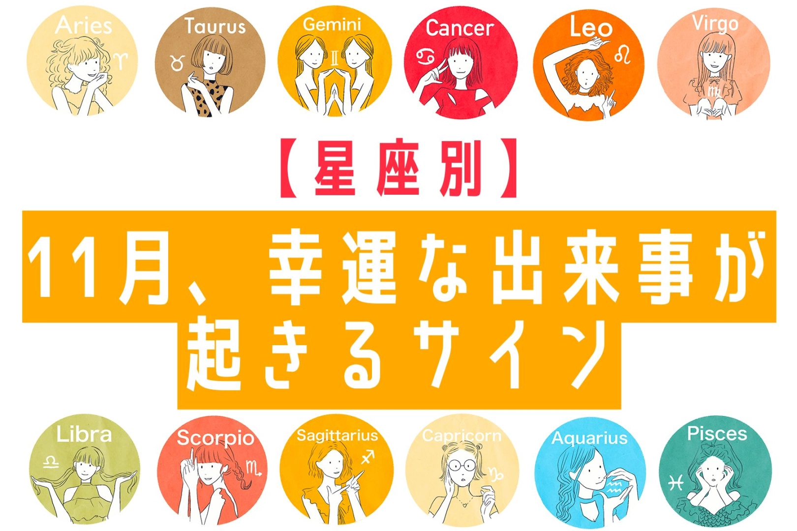 【星座別】11月、幸運な出来事があるサイン<てんびん座~うお座>