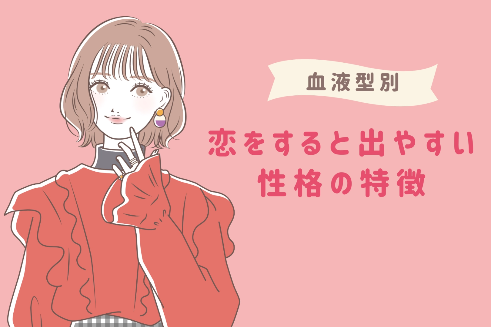 恋をすると、いつもと違う自分が顔を出すことってありますよね。血液型によって、恋愛中に出やすい性格の特徴や行動パターンが少しずつ違うんです。この記事では、血液型別に女性が、恋をするとどんな一面を見せやすいのかを解説します。