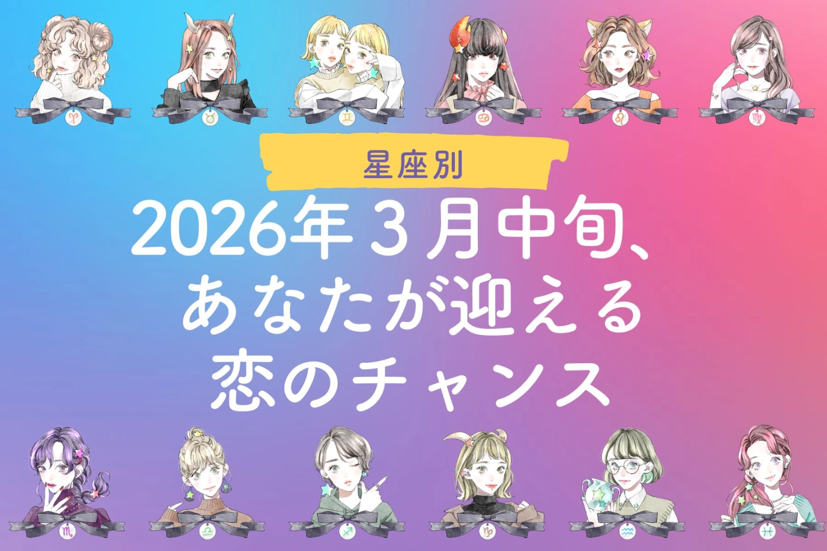3月中旬は、環境や気持ちに小さな変化が生まれやすい時期です。新しい出会いや、気になる人との距離が縮まるきっかけが生まれる人も多いでしょう。今回は、そんな3月中旬にあなたがどんな恋のチャンスを迎えるのかを、星座別にわかりやすくご紹介します。